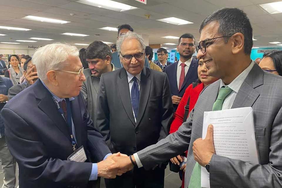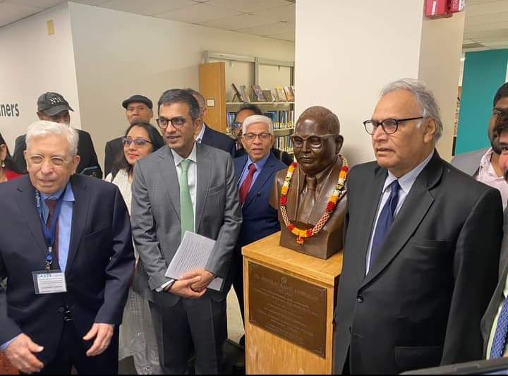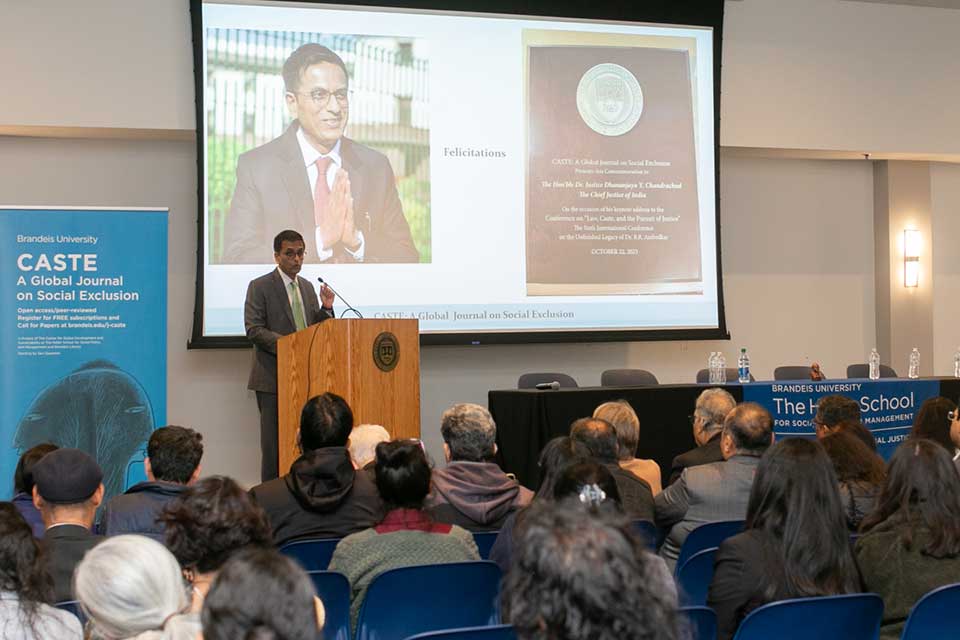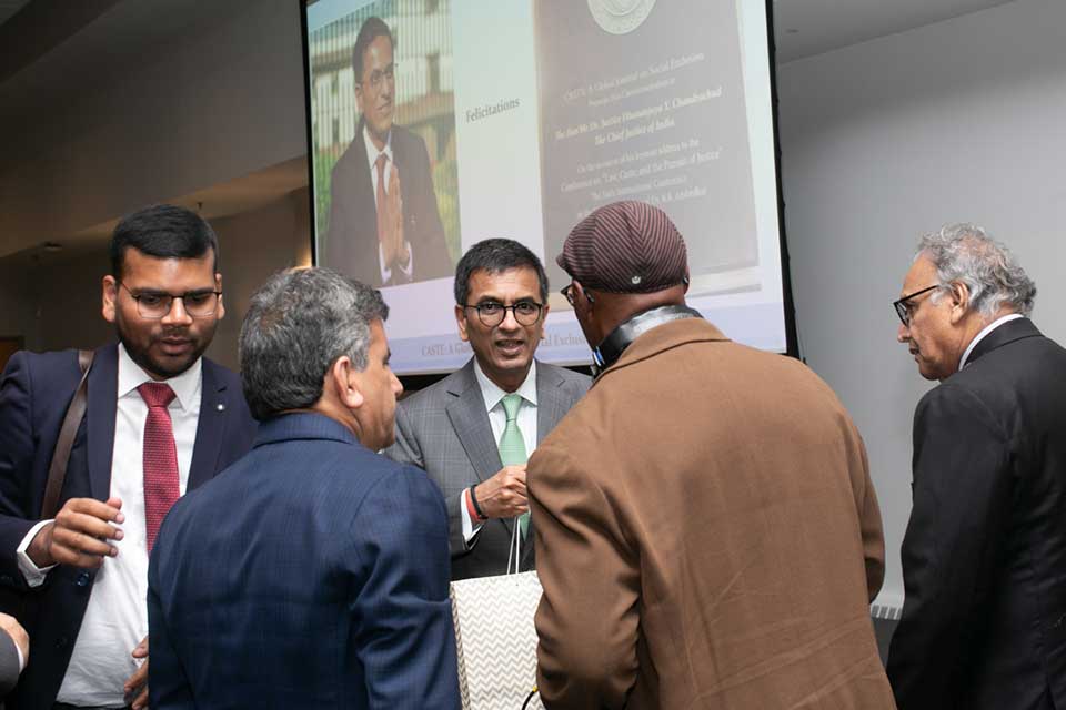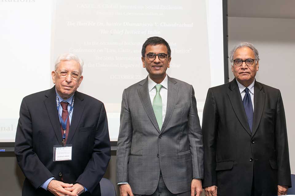 The Hon’ble Dr. Justice Dhananjaya Y Chandrachud, The Chief Justice of India with the Joint Editors-in- chief of Caste: a journal of social exclusion- Professor Laurence Simon (left) and Professor Sukhadeo Thorat (Right)